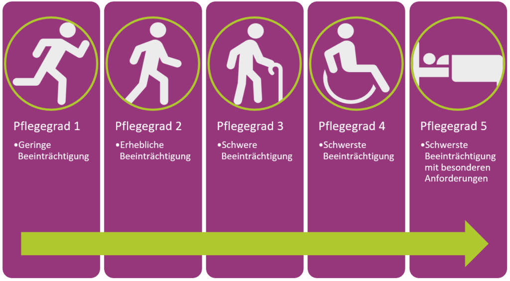 Bei der Bestimmung des Pflegegrades geht es hauptsächlich darum, wie viel Zeit man für die Hilfe/Pflege benötigt!