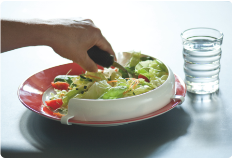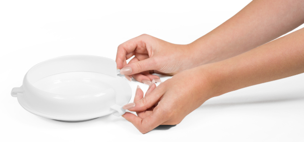 Der Tellerrand lässt sich einfach und bequem an bereits vorhandene Teller im Haushalt anbringen!