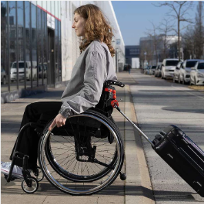 einfach das Gepäck mit dem Rollstuhl verbinden