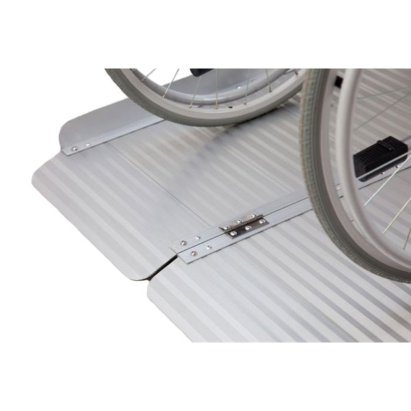 Diese wetterfeste Rampe kann einfach hingelegt werden und schon ist sie einsatzbereit. Dazu kann sie in der Mitte einmal gefaltet werden und benötigt somit wenig Stauraum.