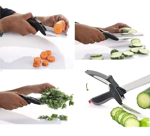 Die Multifunktions Schere für deine Küche. Diese 2in1 Schere lässt sich mit nur einem Griff zu einem Messer umwandeln, womit sich ideal Gemüse und Obst schneiden lässt.