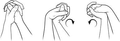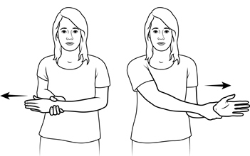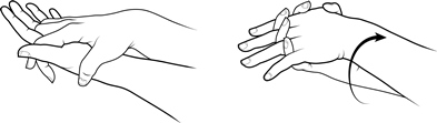 Beugen Sie Ihr Handgelenk langsam von einer Seite zur anderen (zur Daumenseite hin, dann zur Kleinfingerseite).