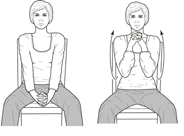Die Finger ineinander verschränken, wobei die betroffene Hand oben liegt (wie gezeigt).