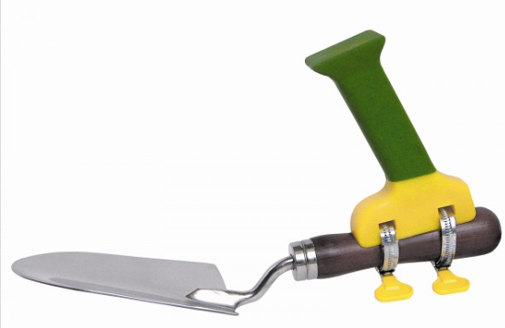 Wenn Sie zwei Zusatzgriffe im rechten Winkel zueinander an einem Rechen oder einer Hacke anbringen, können Sie die Arbeit ohne Verdrehen und Bücken erledigen und schonen so nicht nur Ihre Hände, sondern auch Ihren Rücken.