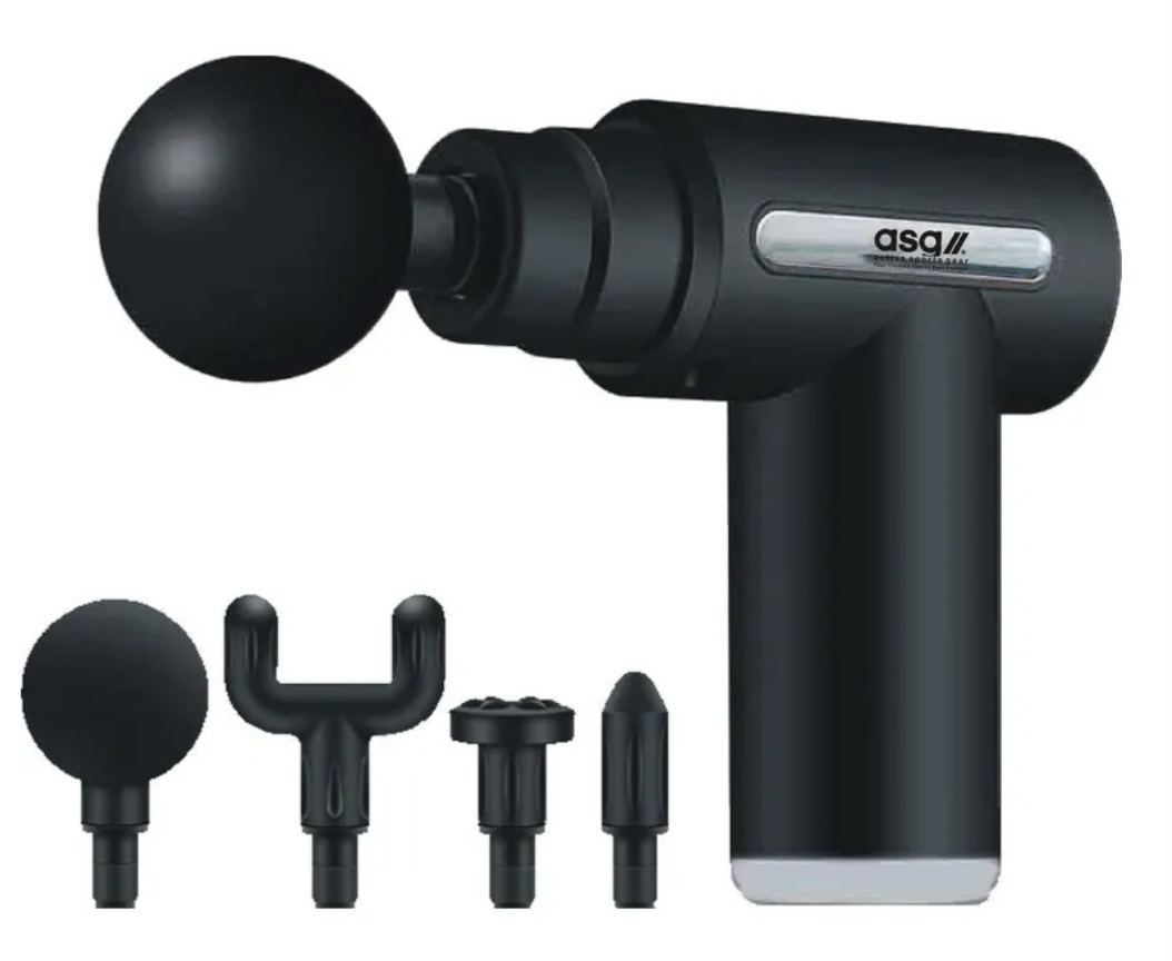 Eine Massage Gun ist ein handgeführtes elektrisches Gerät mit wechselbaren Aufsätzen, das sehr schnell kurze, kräftige Stöße in das Gewebe abgibt. Durch diese schnellen Impulse werden Muskeln mechanisch stimuliert — ähnlich wie eine sehr schnelle, punktuelle Massage.