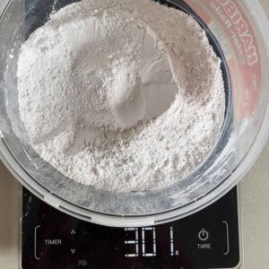 Wiegt zunächst die Gießmasse ab. Die Menge richtet sich nach der Anzahl der Buchstaben die ihr gießen möchtet. Für 4-5 Buchstaben habe ich ca. 200 Gramm Gießmasse benötigt.