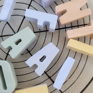 DIY Buchstaben Deko – in schönen Pastelltönen. Keramik Gießmasse lässt sich nämlich auch super einfach selbst einfärben. Das Material dazu zeigen wir euch in diesem Blogpost!