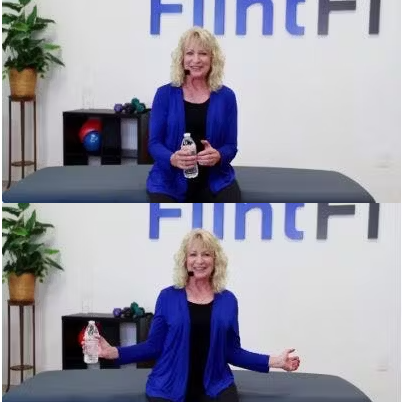 Verflechten Sie Ihre Finger, und legen Sie beide Hände um eine Wasserflasche. Machen Sie dann große kreisende Bewegungen. Sie können Ihren nicht betroffenen Arm zur Führung des betroffenen Arms verwenden. Machen Sie 10 langsame, kontrollierte Kreise.
