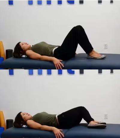 Seien Sie bei den nächsten beiden Übungen zur Schlaganfallreha vorsichtig. Wenn sich Ihr unterer Rücken vom Boden abhebt, überspringen Sie diese Bewegungen, bis Sie eine bessere Rumpfstabilität entwickelt haben.