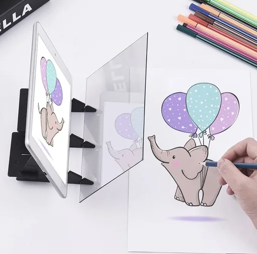 Das optische Zeichenbrett für ein Bildgebungsprinzip, um das Malen bzw. Skizzieren zu Assistieren. Der Skizzenassistent ist ein Spiegel-Projektor, der mit Deinem Smartphone oder Tablet funktioniert. Mit diesem Bildrefelxions Projektor lassen sich Bilder auf jede Art von Oberflächen wie Papier, Textilien, Ton, Holz, T-Shirts etc. projizieren. Ein optischer Kunstprojektor für ein unkompliziertes Aufzeichnen von Bildern. Das optische Zeichenbrett ist ein perfektes Skizzierwerkzeug für angehende und erfahrene Künstler oder auch für Kinder. Ein umweltfreundliches Utensil, da es ganz ohne lästiges Ausdrucken und der damit verbundenen Papierverschwendung auskommt.