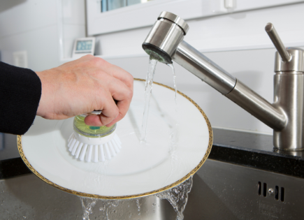 Auf Knopfdruck gibt sie Spülmittel direkt auf die Oberfläche ab – für effizientes Arbeiten ohne Unterbrechung. Die robusten Nylonborsten entfernen selbst hartnäckige Rückstände gründlich, ohne empfindliche Oberflächen zu beschädigen – ideal auch für antihaftbeschichtetes Kochgeschirr.