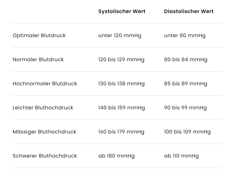 Gemäss den Richtlinien der Schweizerischen Gesellschaft für Hypertonie gelten für Erwachsene über 18 Jahre folgende Werte: