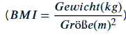 Formel:BMI = Körpergewicht (kg) / (Körpergröße (m))^2